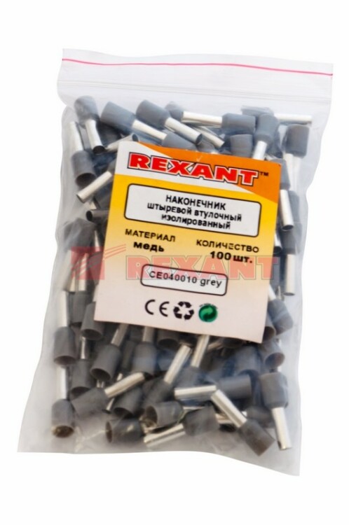Наконечник штыревой втулочный изолированный F-9 мм 4 мм² (НШВи 4.0-9) серый REXANT