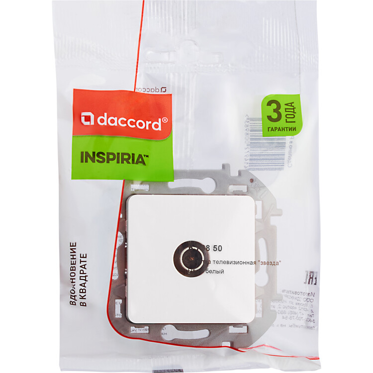 Розетка TV «звезда» 2 дБ 0-2400 мГц белый INSPIRIA