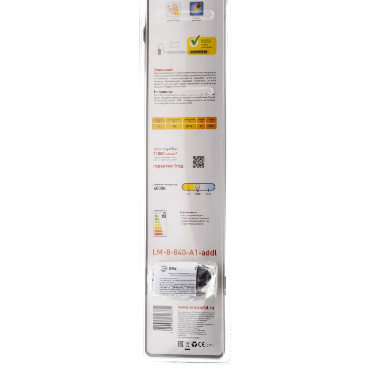 Модульная система освещения 8Вт 850Лм 4000К AC 170-240V DC1A 12В (кабель 1,2м) доп. модуль LM-8-840-A1-addl