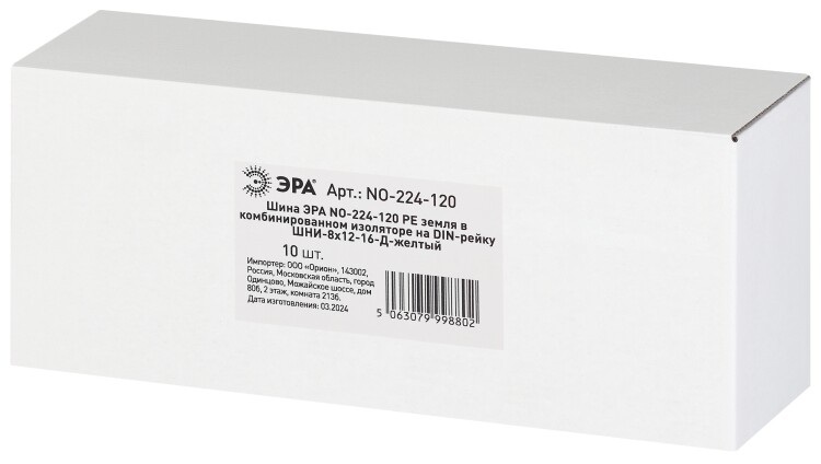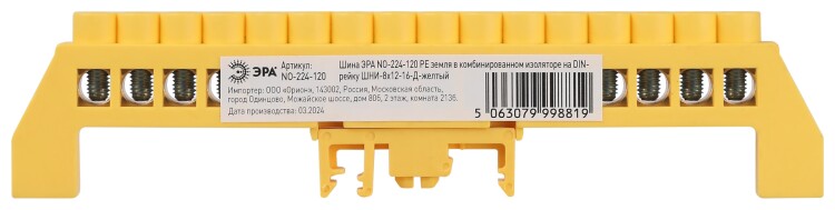 Шина ЭРА NO-224-120 PE земля в комбинированном изоляторе на DIN-рейку ШНИ-8х12-16-Д-желтый