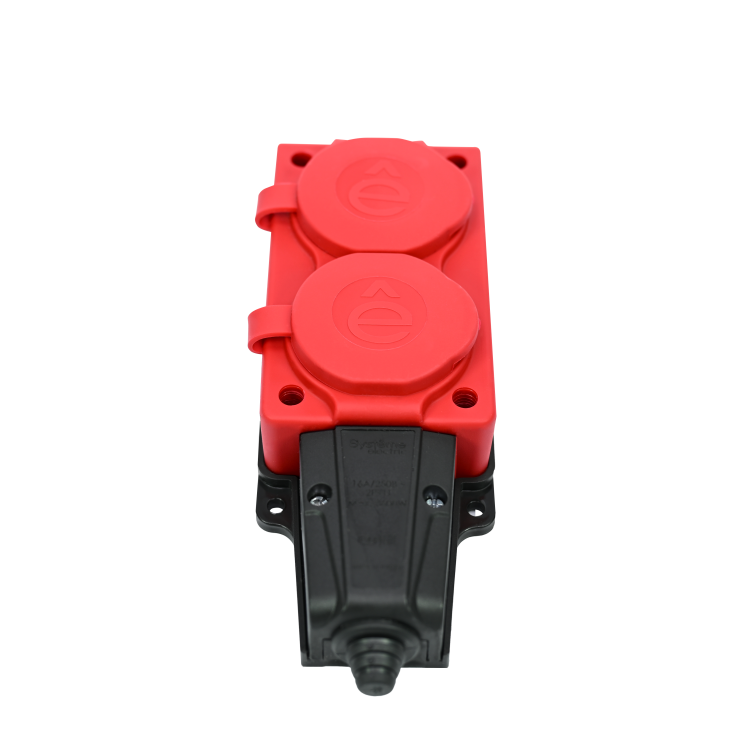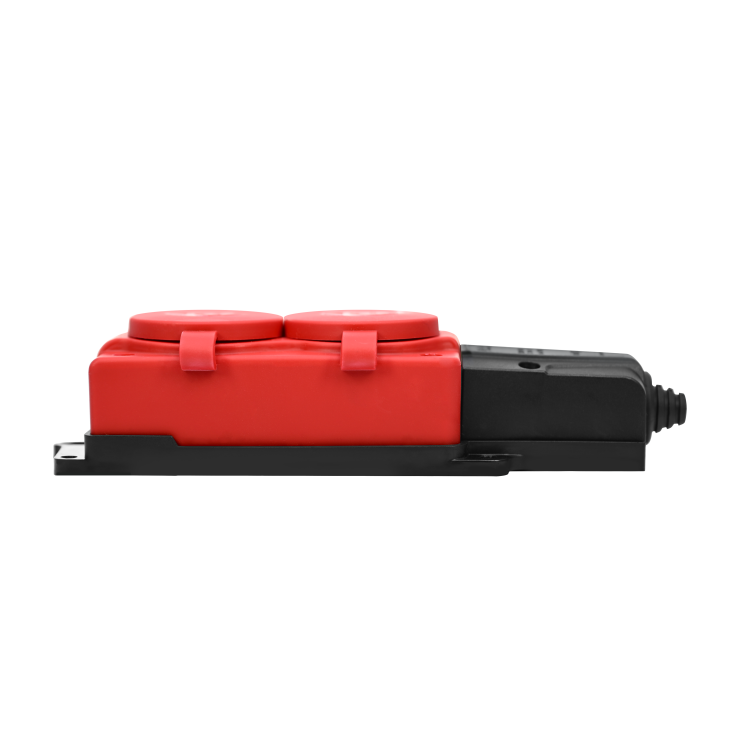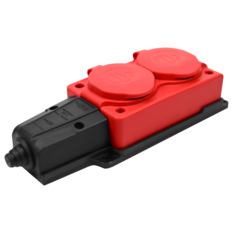 MULTISET Колодка 2х розетка 2К+З каучуковая 16 А/250 В IP44 КРАСНАЯ