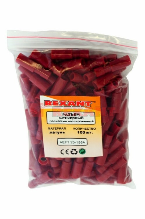 Разъем штекерный полностью изолированный гнездо 4 мм 0.5-1.5 мм² (РШПи-м 1.5-4/РшИмп 1,25-5-4) красный REXANT