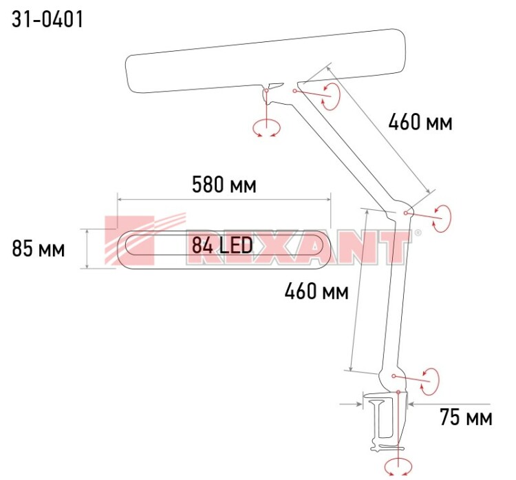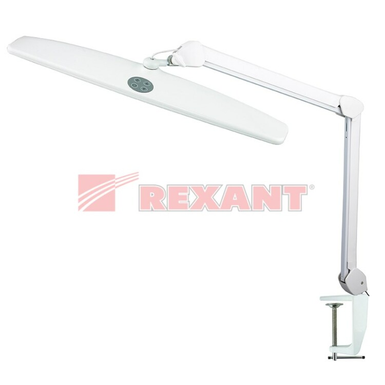 Лампа настольная бестеневая, струбцина, ECO light, 84 SMD LED, сенсорный диммер, белая REXANT