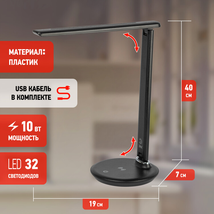 Настольный светильник ЭРА NLED-504-10W-BK светодиодный черный