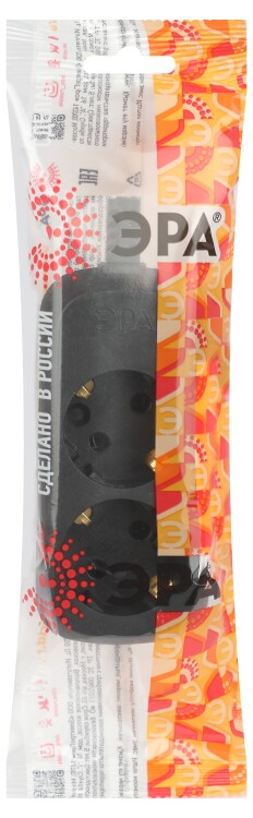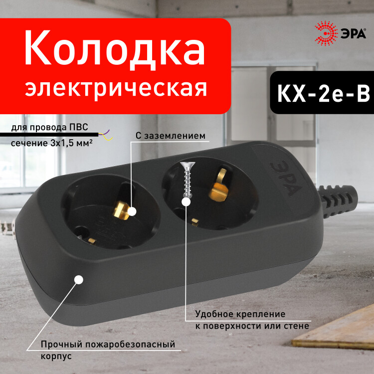 Колодка ЭРА KX-2e-B 2 розетки с зазeмлением черная
