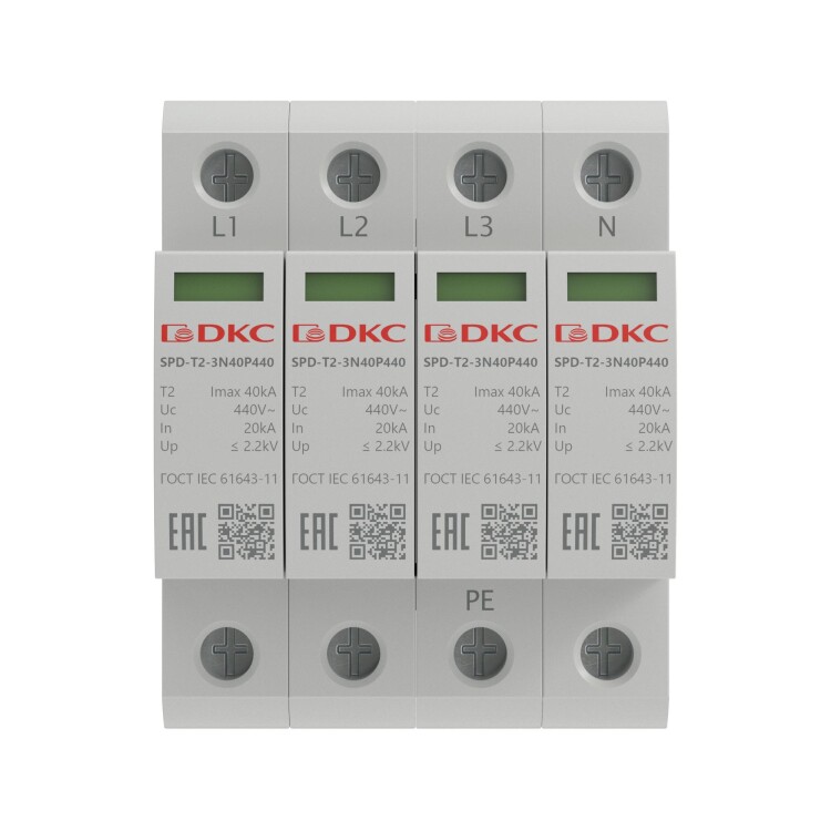 Устройство защиты от импульсных перенапряжений 4-пол. тип 2 Imax 40kA со сменным модулем Un 440V