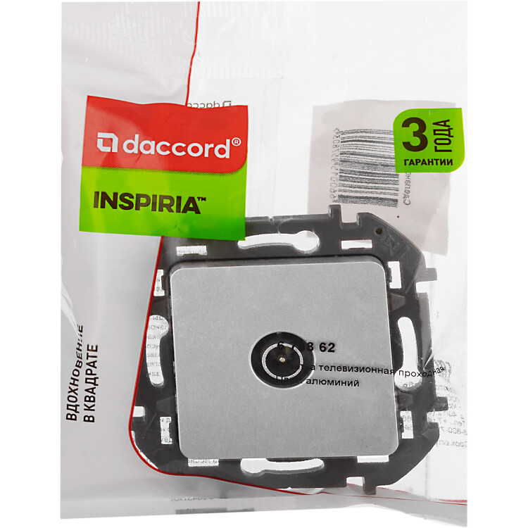 Розетка TV проходная 14 дБ 5-862 мГц алюминий INSPIRIA