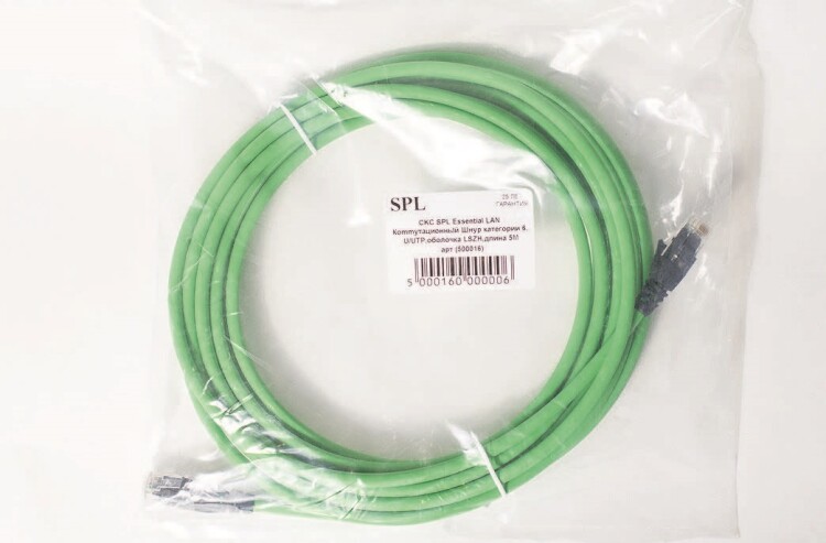 Коммутационный шнур категории 6, U/UTP, 4х2х(7х0,21), LSZH, 5м, зеленый