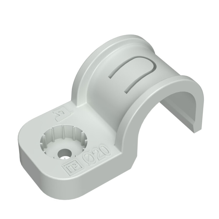 Крепеж-скоба пластиковая односторонняя для прямого монтажа атмосферостойкая серая в гофроящике d20 мм (600шт/кор) Промрукав