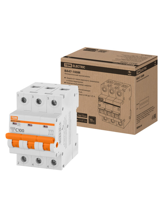 Авт. выкл. ВА47-100М 3Р 100А 10кА х-ка C TDM