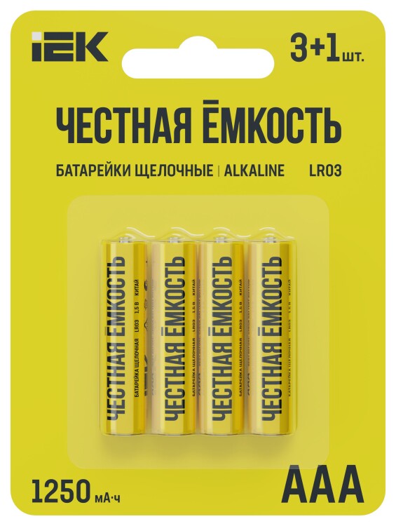 Батарейка щелоч. Alkaline LR03/AAA (4шт/блистер) ПРОМО IEK
