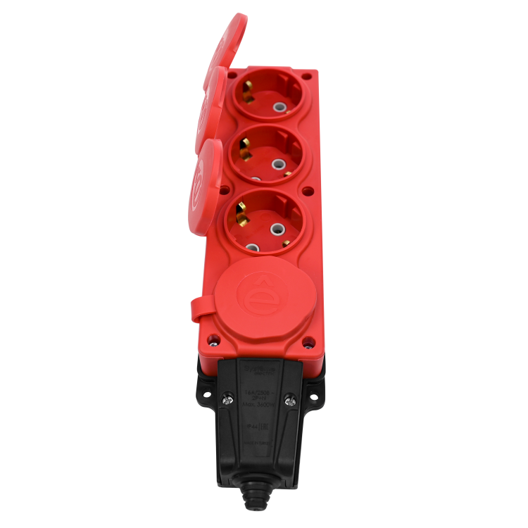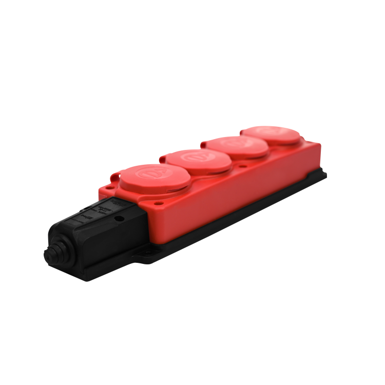 MULTISET Колодка 4х розетка 2К+З каучуковая 16 А/250 В IP44 КРАСНАЯ