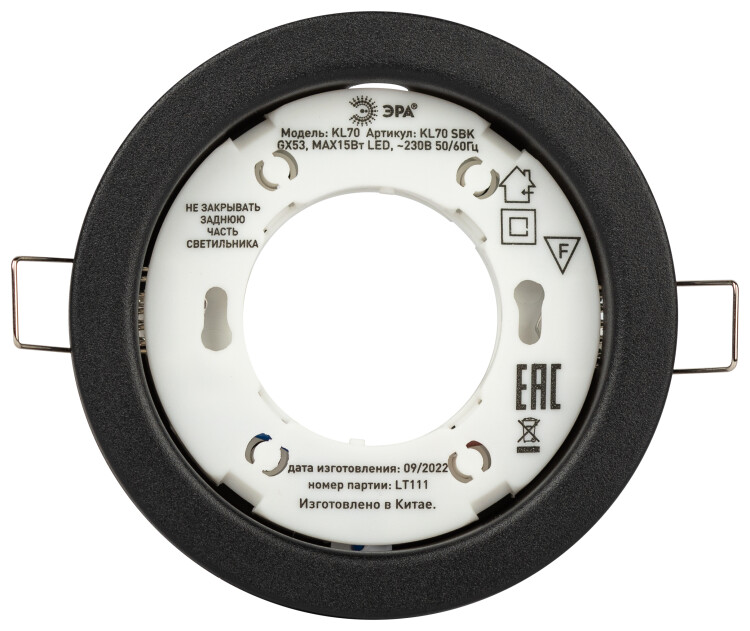 Встраиваемый светильник под лампу GX53 ЭРА KL70 SBK черный матовый