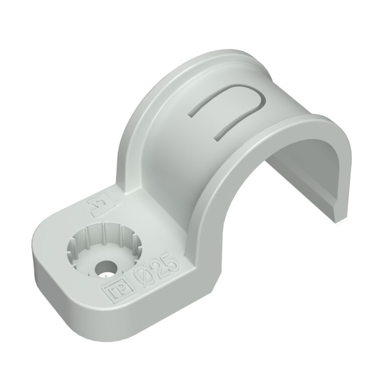 Крепеж-скоба пластиковая односторонняя для прямого монтажа атмосферостойкая серая в гофроящике d25 мм (450шт/кор) Промрукав