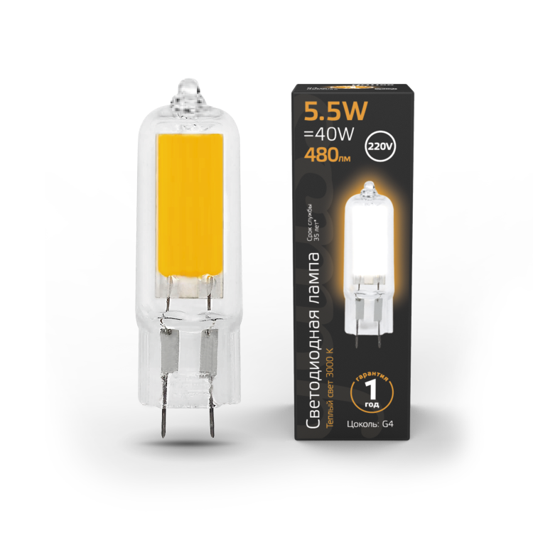 Лампа светодиодная 5,5 Вт 230В G4 стекло 3000K тёплый