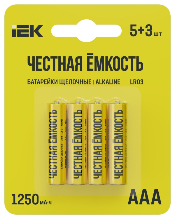Батарейка щелоч. Alkaline LR03/AAA (5+3шт/блистер) ПРОМО IEK