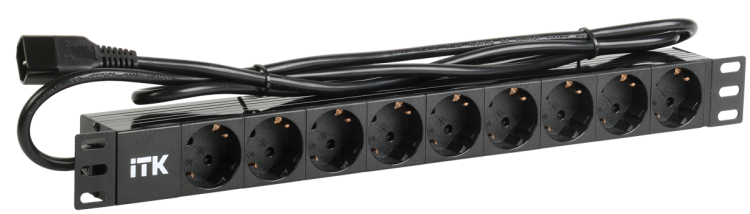 ITK PDU 9 розеток нем. ст, 1U, шнур 2м вилка нем. ст ПВХ чер