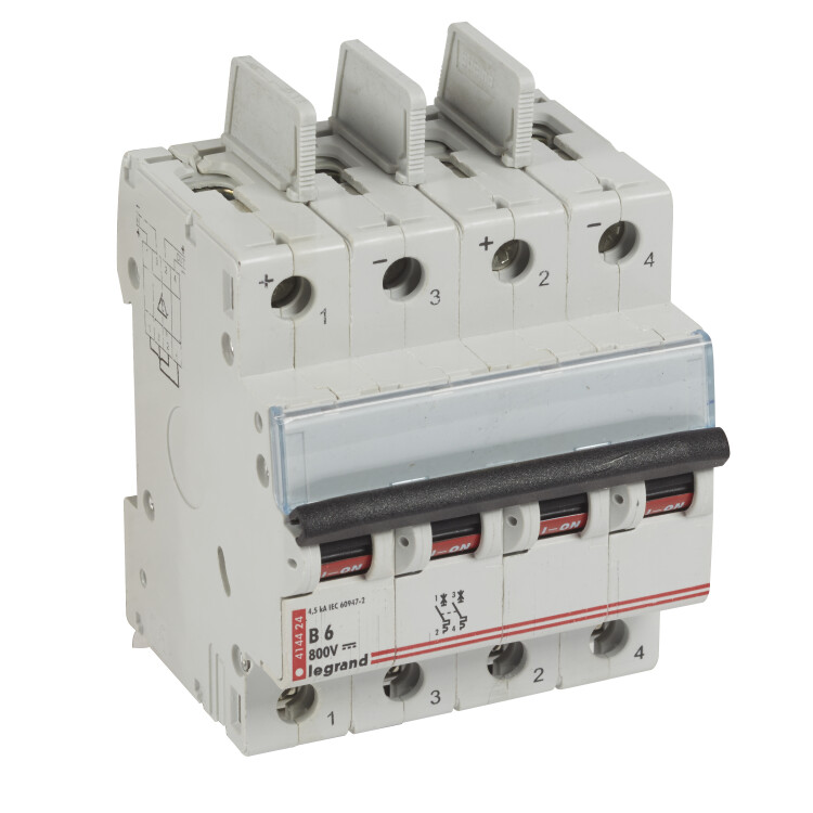 Автоматический выключатель постоянного тока - 800 В= - 6 А - 2 защищенных полюса - 4 модуля