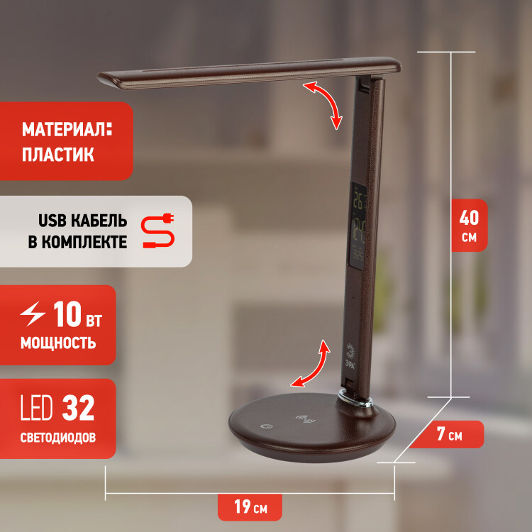 Настольный светильник ЭРА NLED-505-10W-BR светодиодный коричневый