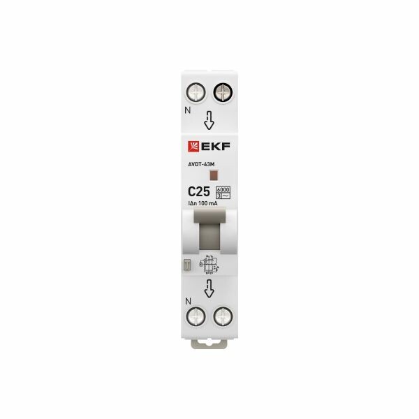 Дифференциальный автомат АВДТ-63М 25А/100мА (1мод., хар.С, электронный тип AС) 6кА EKF PROxima