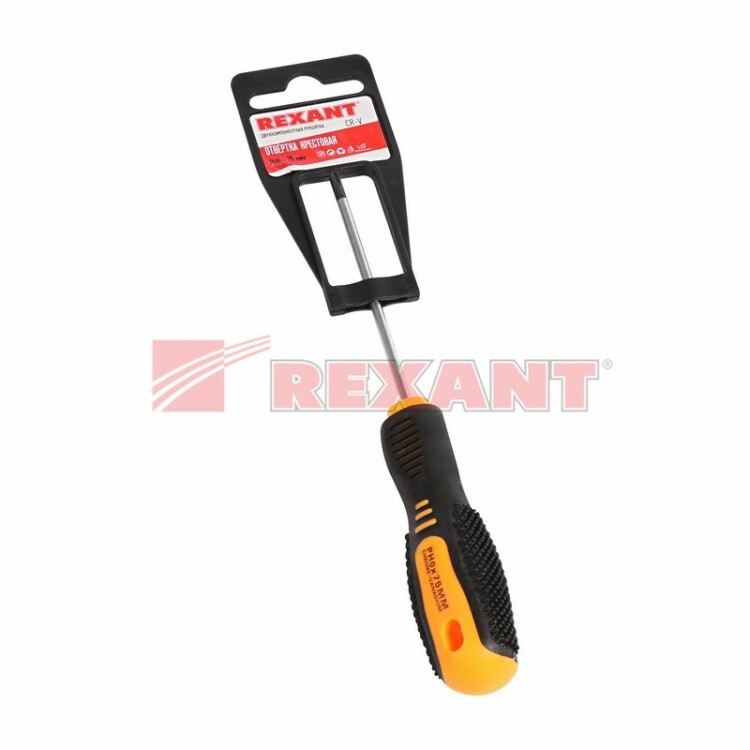 Отвертка крестовая PH0x75мм, двуxкомпонентная рукоятка REXANT
