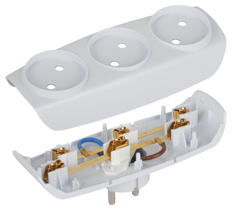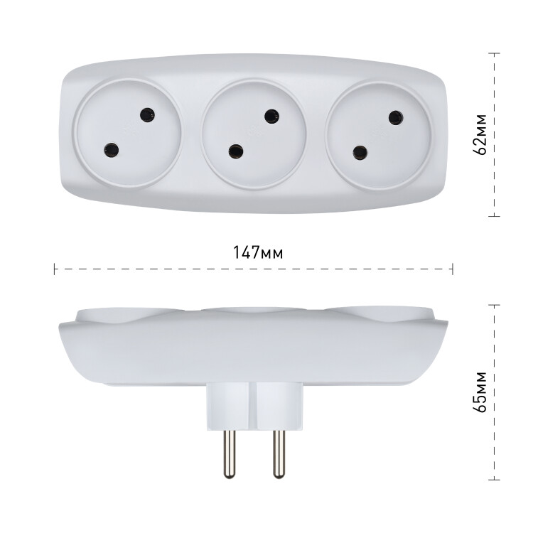 Разветвитель, 3 гнезда, 16А, б/з, IP20, пластик, белый, SP-3-W