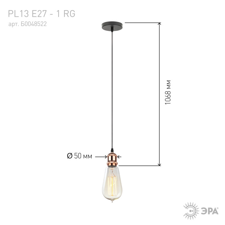 Патрон PL13 E27-1 RG Накладной Е27, провод 1м, розовое золото