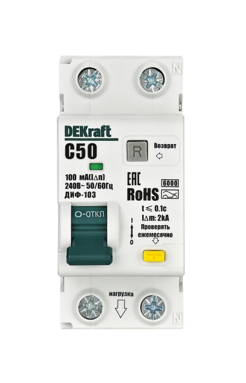 АВДТ 1P+N 50А 100мА AC х-ка C ДИФ-103 6кА нов.