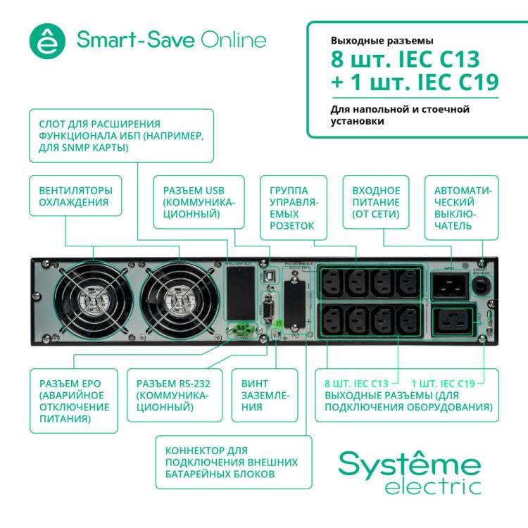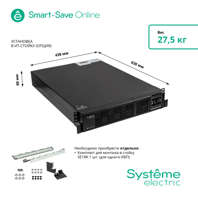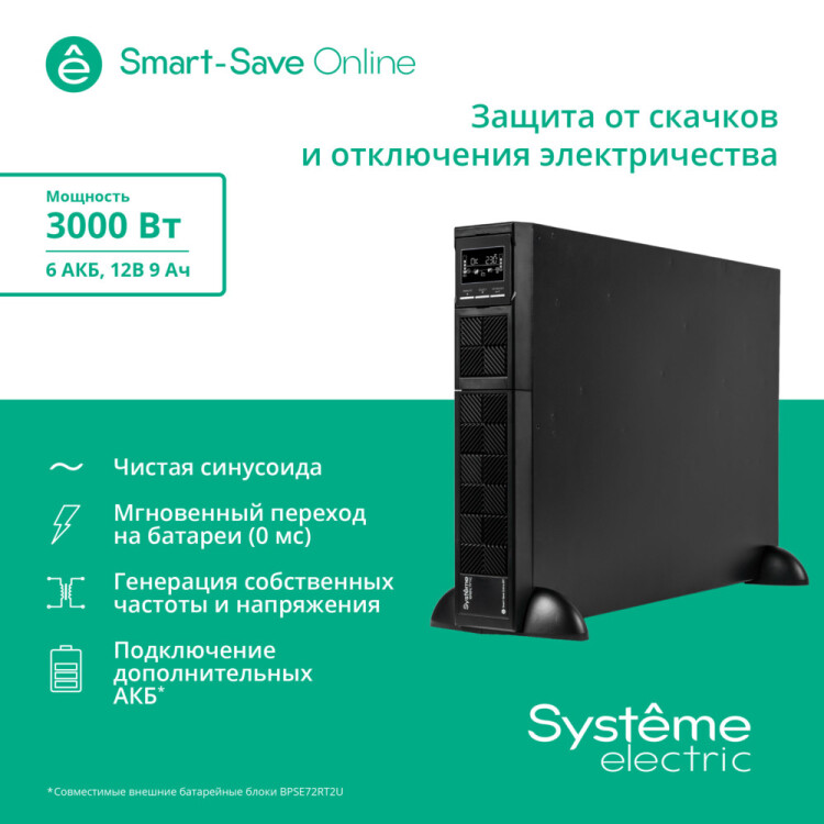 ИБП Smart-Save Online SRT Systeme Electric 3КВА XL RT 2U 230В 8 C13+1 С19 SmSlot