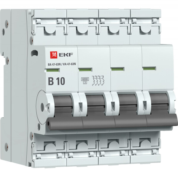 Автоматический выключатель 4P 10А (B) 6кА ВА 47-63N EKF PROxima