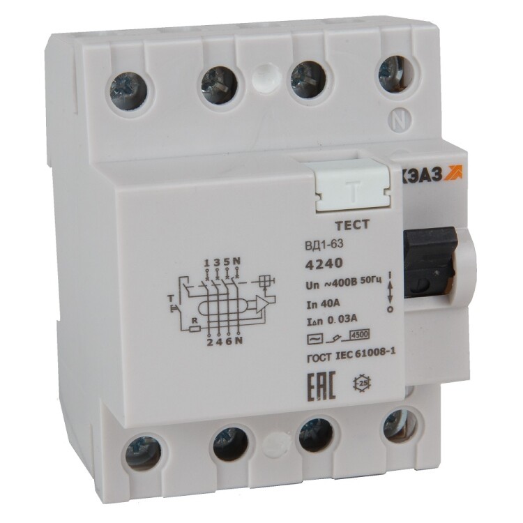 ВДТ без защиты от сверхтоков ВД1-63-4363-АС-УХЛ4 (4P, 63, 100mA) электронное-КЭАЗ