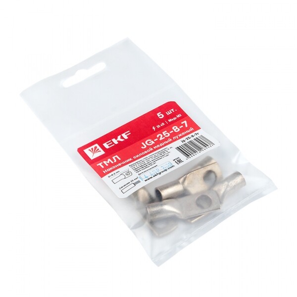 Трубчатый кабельный наконечник кольцевой тонкий M8 25мм? медь EKF