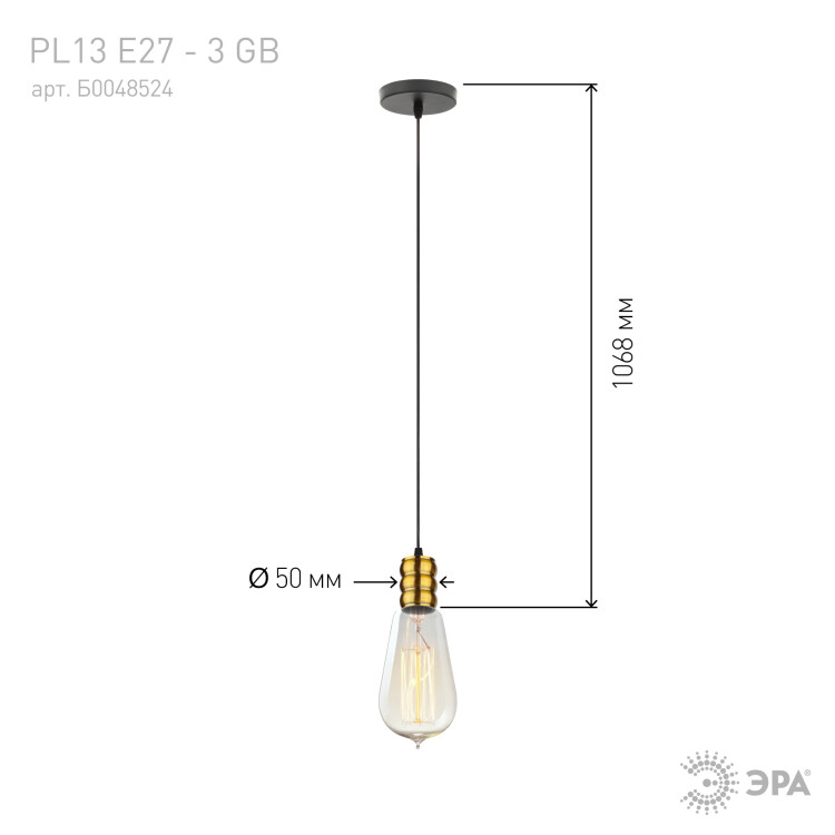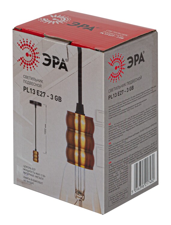 Патрон PL13 E27-3 GB Накладной, Е27, провод 1м, медь