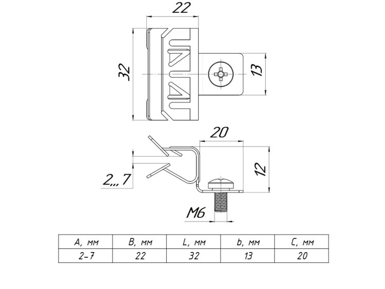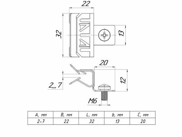 Зажим балочный 3-8 мм с отгибом и винтом М6х9 TDZ EKF