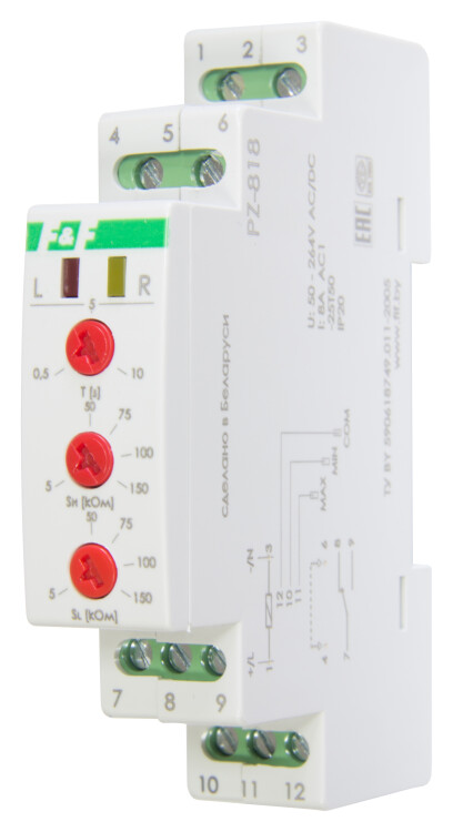 Реле уровня жидкости PZ-818 (двухуровн.; выбор режима работы; раздел. регулир. задержки переключ. по уровням; 1 модуль; датчик в комплекте PZ2 (3шт); монтаж на DIN-рейке) F&F