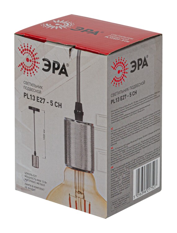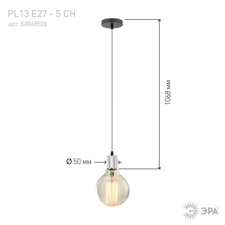 Патрон PL13 E27-5 CH Накладной, Е27, провод1 м, хром