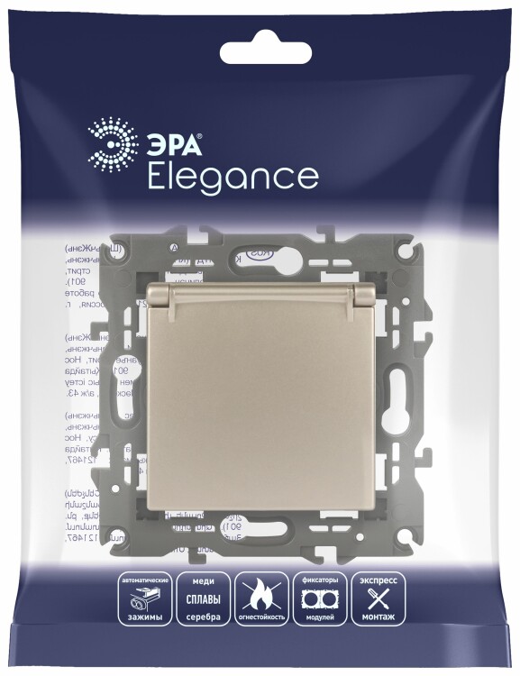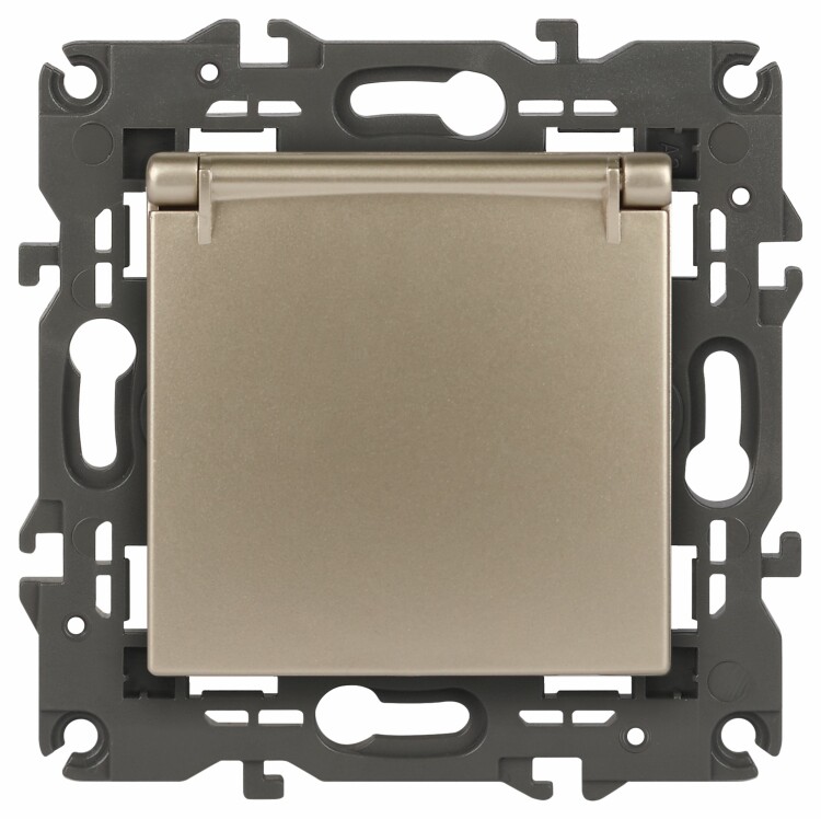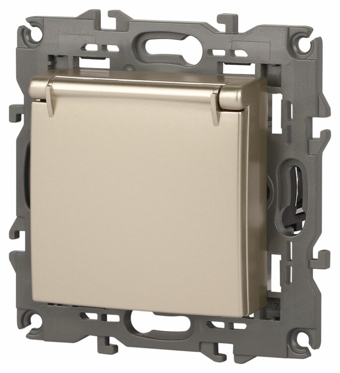 Розетка 2P+E со шторками с крышкой 16А шампань Elegance 14-2103-04