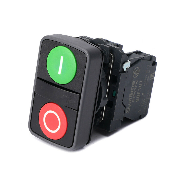 Кнопка двойная SB5 в сборе модуль 22мм зел. "I"+красн. "O" пластик 1НО+1НЗ