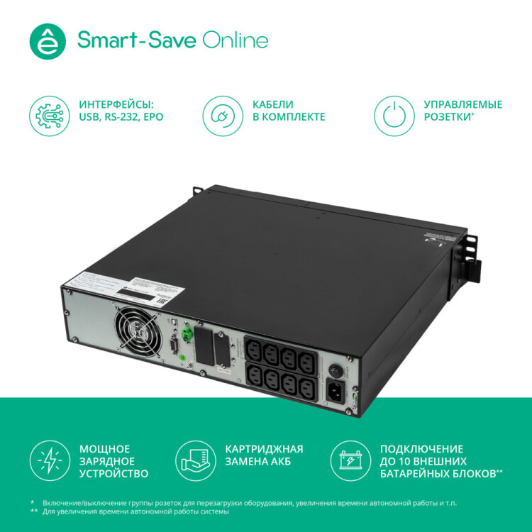ИБП Smart-Save Online SRT Systeme Electric 1КВА XL RT 2U 230В 8 C13 SmartSlot