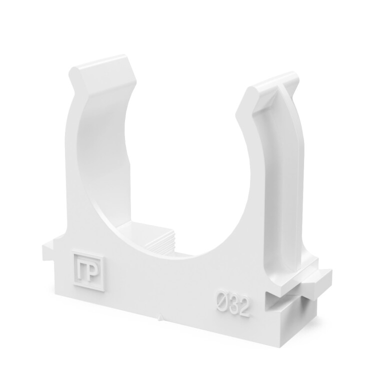 Крепеж-клипса для труб для прямого монтажа белая в п/э d32 мм (25шт/500шт уп/кор) Промрукав