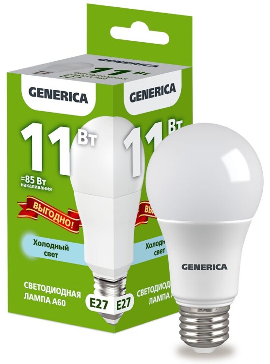 Лампа LED A60 груша 11Вт 230В 6500К E27 ПРОМО GENERICA