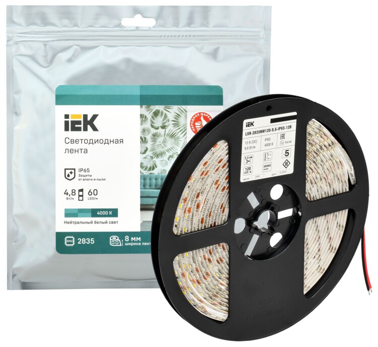 Лента светодиодная LSR-2835NW120-9,6Вт IP65 12В 5м IEK
