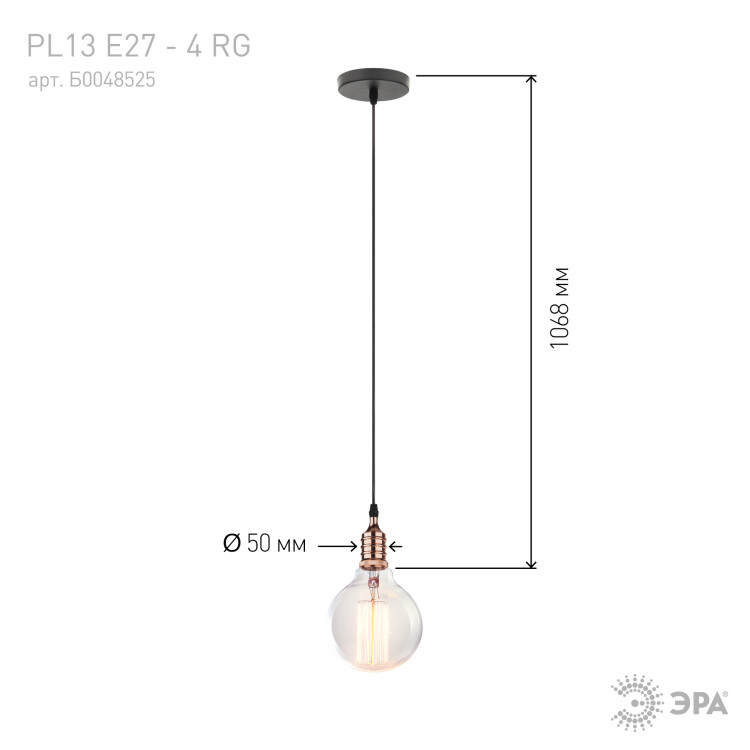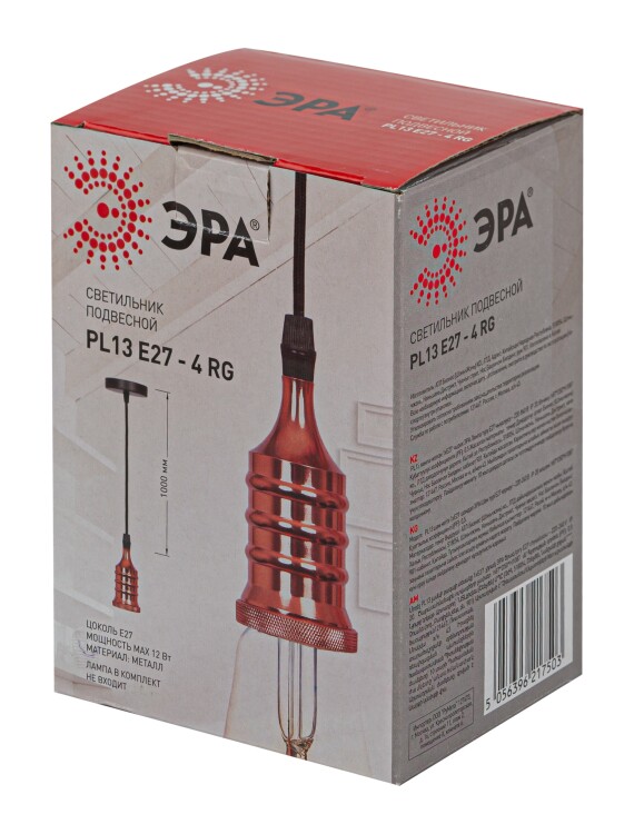 Патрон PL13 E27-4 RG Накладной, Е27, провод 1 м, розовое золото