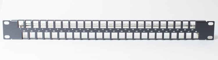 Коммутационная панель модульная 19", 48 порта, 1U, с метками для маркировки, с задним организатором (без модулей), черный