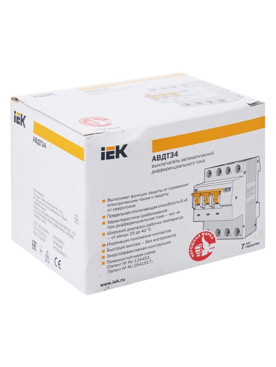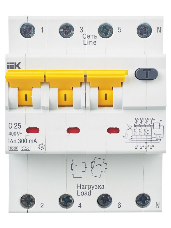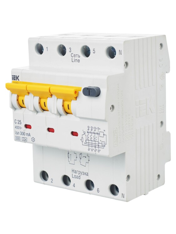 Автомат. выкл. дифф. тока 4-пол. 25А 300мА тип A 6кА хар-ка C серия АВДТ 34 C25 300мА - Автоматический Выключатель Дифф. тока