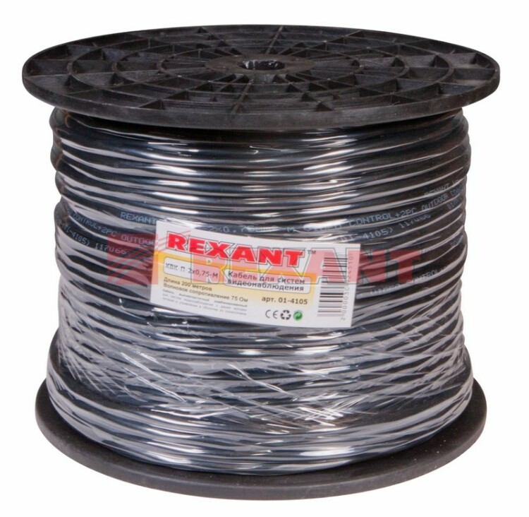 Кабель КВК-П-2 +2x0,75 мм² (Cu/Cu) черный, 200 м, REXANT
