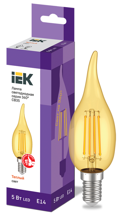 Лампа светодиодная CВ35 свеча на ветру золото 5Вт 230В 2700К E14 серия 360° IEK