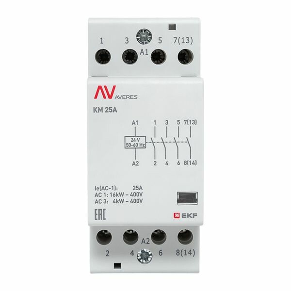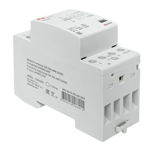 Контактор модульный КМ 25А 4NO 24VAC (2 мод.) AVERES EKF