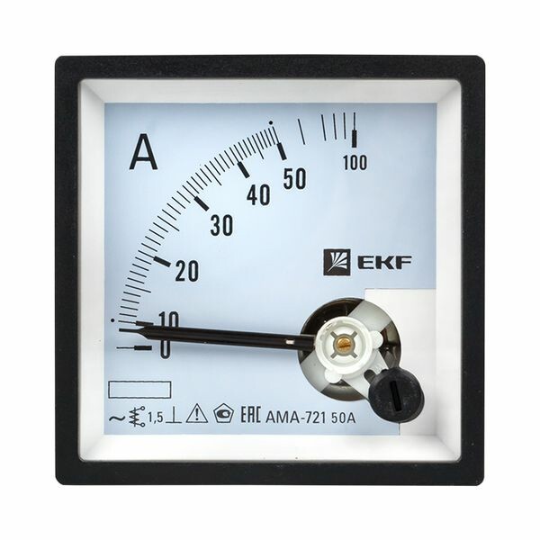 Амперметр AMA-721 аналоговый на панель (72х72) квадратный вырез 50А прямое подкл. EKF