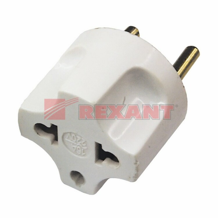 Адаптер сетевой (переxодник) с Евро А/F на вилку С1 CEE 7/2 "Питер" 10А б/з белый REXANT